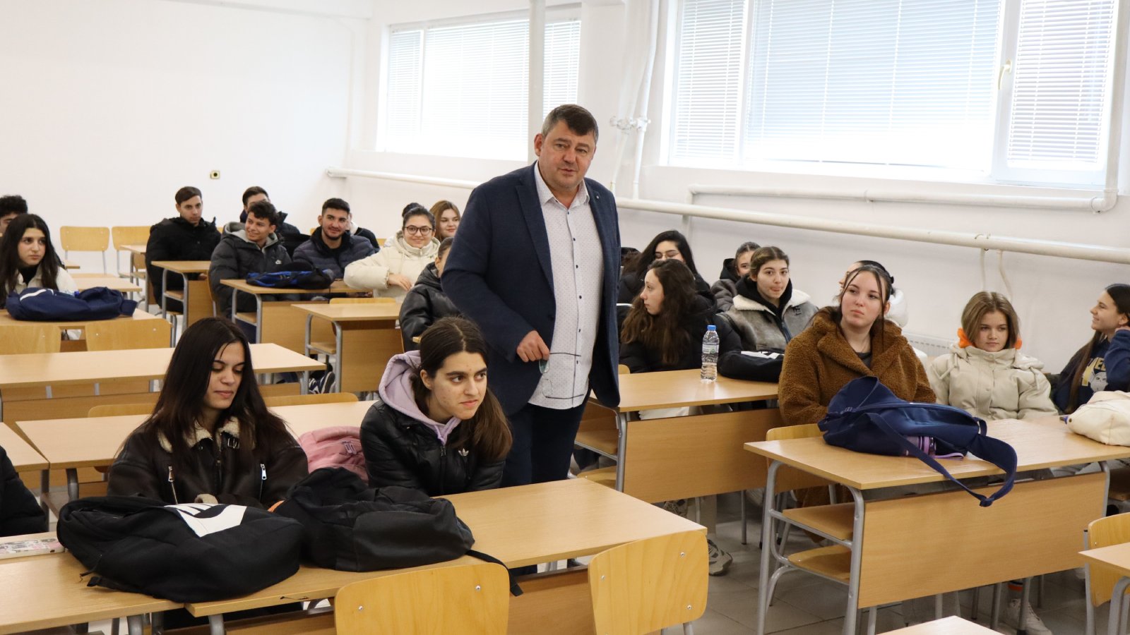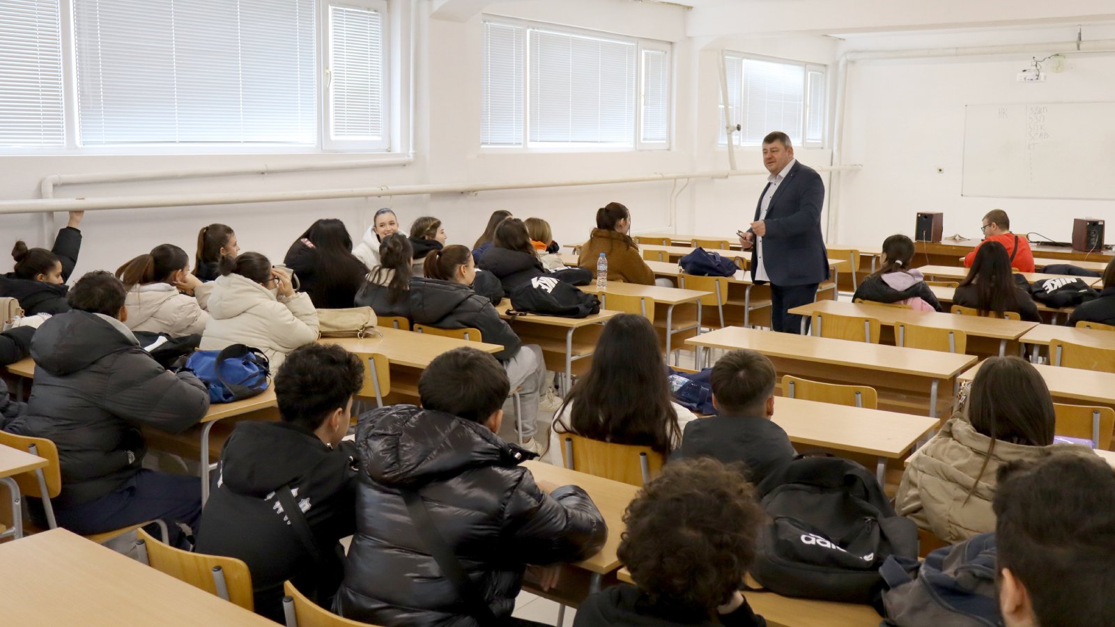 Съдия Николай Борисов от Районен съд – Разград от своя страна гостува на единадесетокласници от Професионална гимназия по икономика „Робер Шуман“ в града.